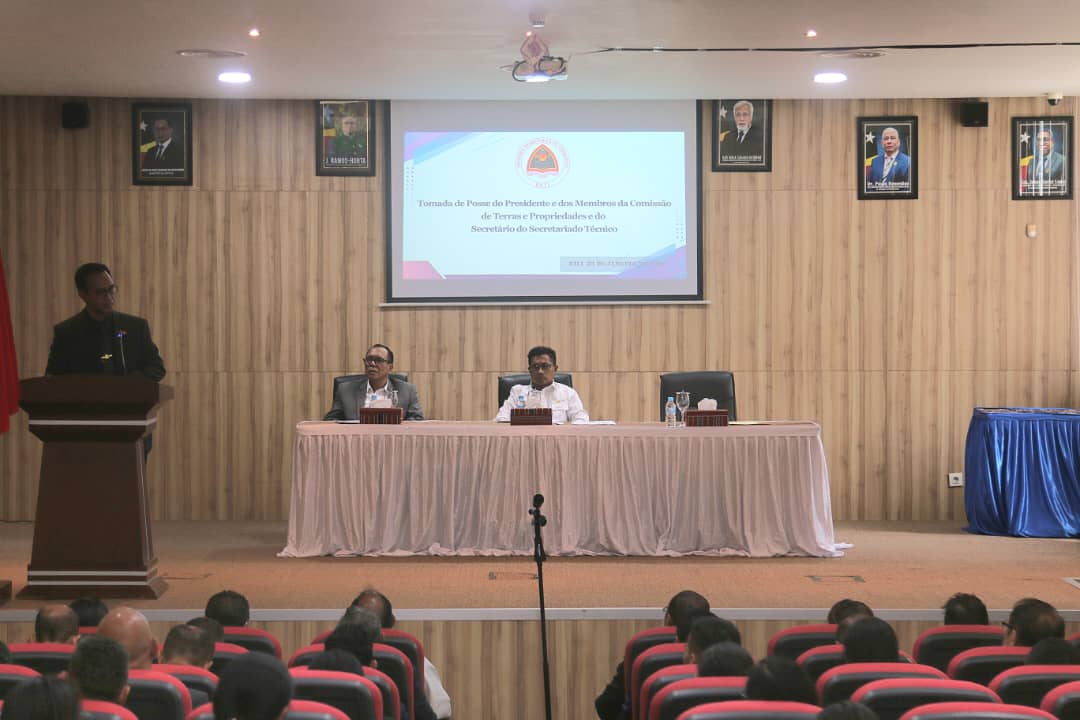 DILI,MJ Sesta-Feira 23 de janeiru 2026 Sua-Eselénsia Ministru Justisa, Dr. Sérgio de Jesus Fernandes da Costa Hornai, dezafia no husu ba emposadu sira, hahu hosi Prezidente no Membru Komisaun Terras no Propriedade sira, hamutuk ho Sekretáriu ba Sekretariadu Tékniku, atu kaer metin sira-nia funsaun ho integridade, tuir Konstituisaun Repúblika Demokrátika Timor-Leste, iha sala Auditóriu Ministériu Justisa, Kolmera, Díli.