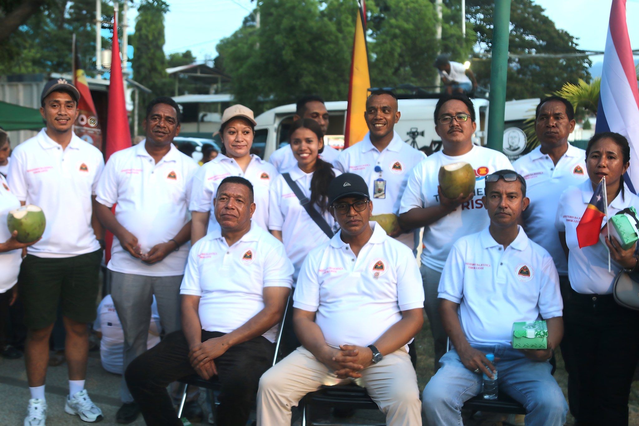 DILI,MJ-Domingu 26 Outubru 2025 Sua-Eselénsia Ministru Justisa, Dr. Sérgio de Jesus Fernandes da Costa Hornai, hamutuk ho dirijente no funsionáriu sira hosi kada diresaun ne’ebé hamahan aan iha Ministériu Justisa, partisipa serimónia Komemorativa Nasionál ba Asosiasaun Nasaun sira Sudeste Aziátiku nian (ASEAN) ba dala-11, ne’ebé hala’o iha Largo Lisidere, Díli.