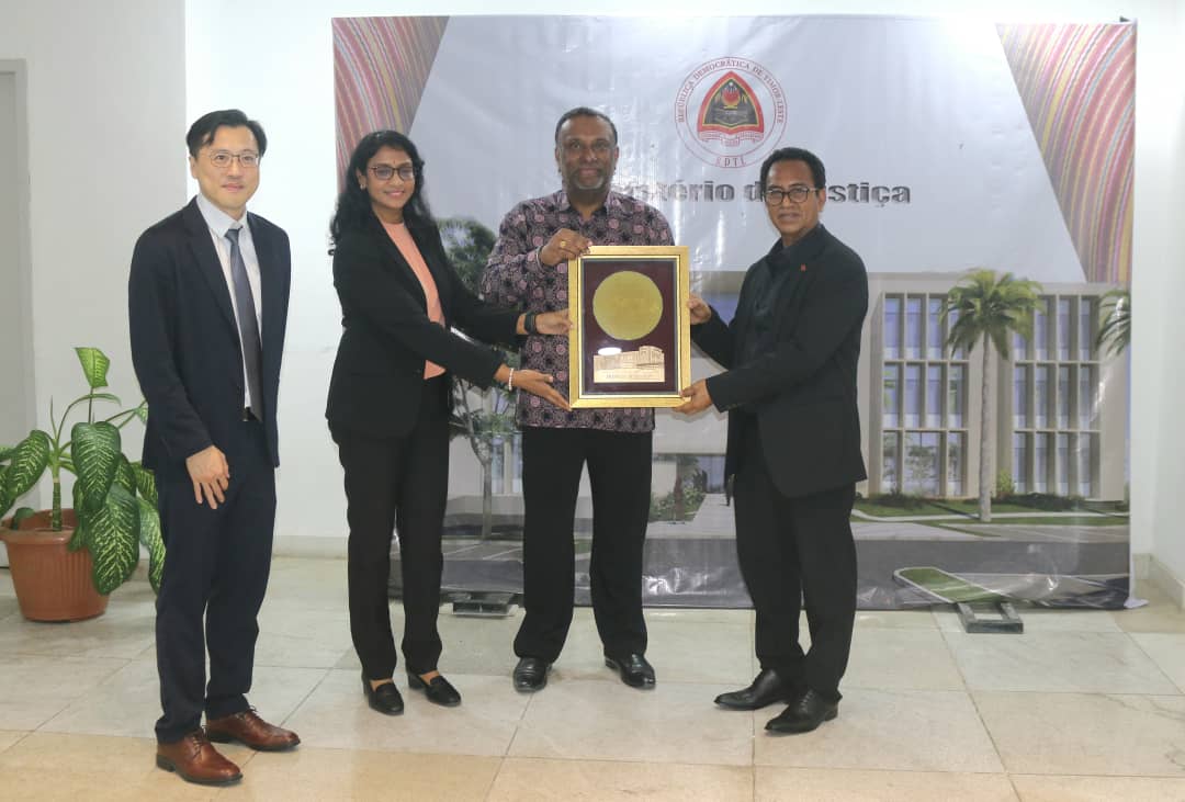 DILI,MJ Tersa-Feira 10 de Fevereiro 2026 Sua-Eselénsia Ministru Justisa, Dr. Sérgio de Jesus Fernandes da Costa Hornai, halo reuniaun ho Secretário-Geral Adjunto da Conferência dos Ministros da Justiça dos Países de Língua Oficial Portuguesa (CMJPLOP), Dr. João Arcénio Oliveira ho komitíva, iha sala sorumutu Ministériu Justisa, edifísiu Ministériu Justisa, Kolmera, Díli.