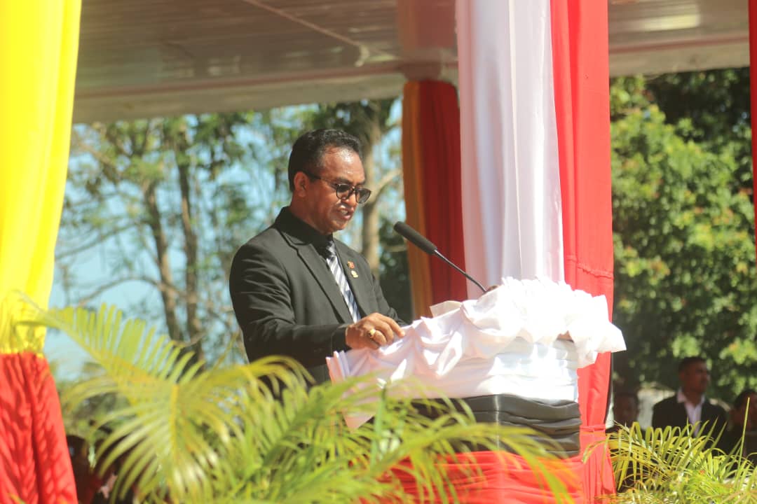 BOBONARO,MJ Sesta-Feira 28 Novembro 2025 Sua-Eselénsia Ministru Justisa, Dr. Sérgio de Jesus Fernandes da Costa Hornai, dezempeña funsaun nu’udár inspetór iha serimónia komemorasaun Loron Proklamasaun Independénsia (28 de Novembru 1975 – 28 de Novembru 2025) ba dala-50, ne’ebé hala’o iha Kampu Gimnásiu Maliana, Munisípiu Bobonaro.