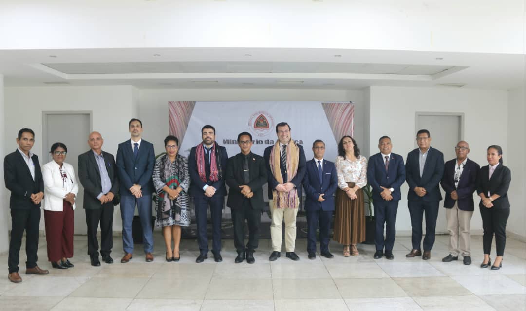 DILI,MJ Tersa-Feira 10 de Fevereiro 2026 Sua-Eselénsia Ministru Justisa, Dr. Sérgio de Jesus Fernandes da Costa Hornai, halo reuniaun ho Secretário-Geral Adjunto da Conferência dos Ministros da Justiça dos Países de Língua Oficial Portuguesa (CMJPLOP), Dr. João Arcénio Oliveira ho komitíva, iha sala sorumutu Ministériu Justisa, edifísiu Ministériu Justisa, Kolmera, Díli.