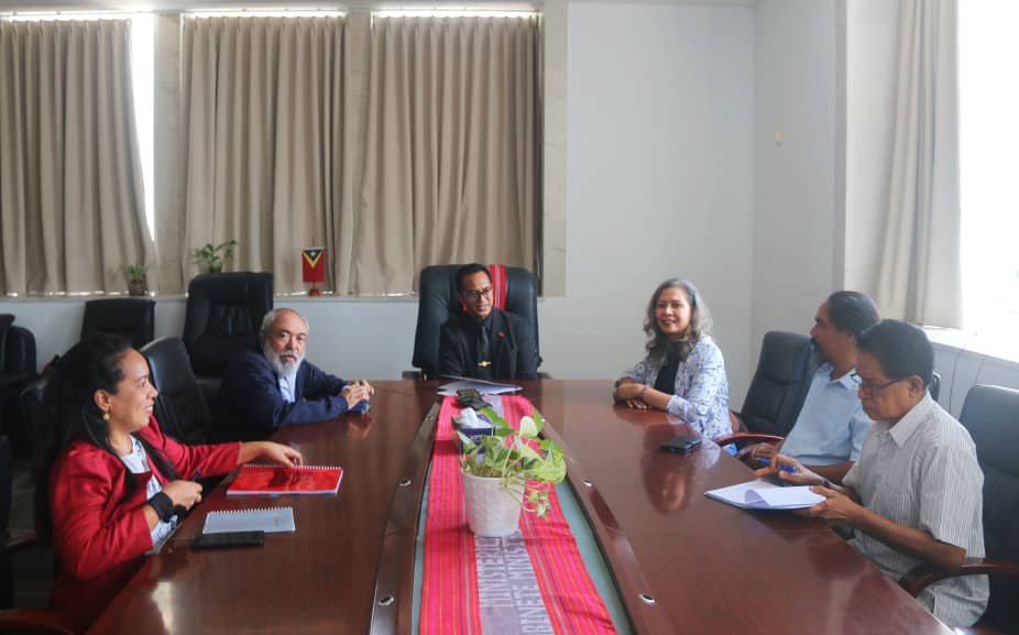 DILI,MJ Tersa-Feira 24 de Marsu 2026 Sua-Exelénsia Ministru Justisa, Dr. Sérgio de Jesus Fernandes da Costa Hornai, realiza reuniaun ho Komisaun ba Rekrutamentu no Selesaun Juis (KRSJ) sira Supremu Tribunál Justisa nian kompostu husi Dr. Avelino Coelho, Dra. Carmelita Moniz no Dr. José Pedro Mariano Neves Camões, iha sala reuniaun Gabinete Ministru Justisa, Ministériu Justisa, Colmera, Díli.
