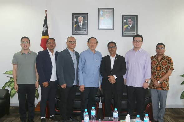 DILI,MJ-Kinta-Feira 30 Outubru 2025 Sua-Eselénsia Ministru Justiça, Dr. Sérgio de Jesus Fernandes da Costa Hornai, hala’o enkontru ho empreza Persada Kentjana Timor LDA, iha sala sorumutu Gabinete Ministru Justiça, Colmera, Díli.