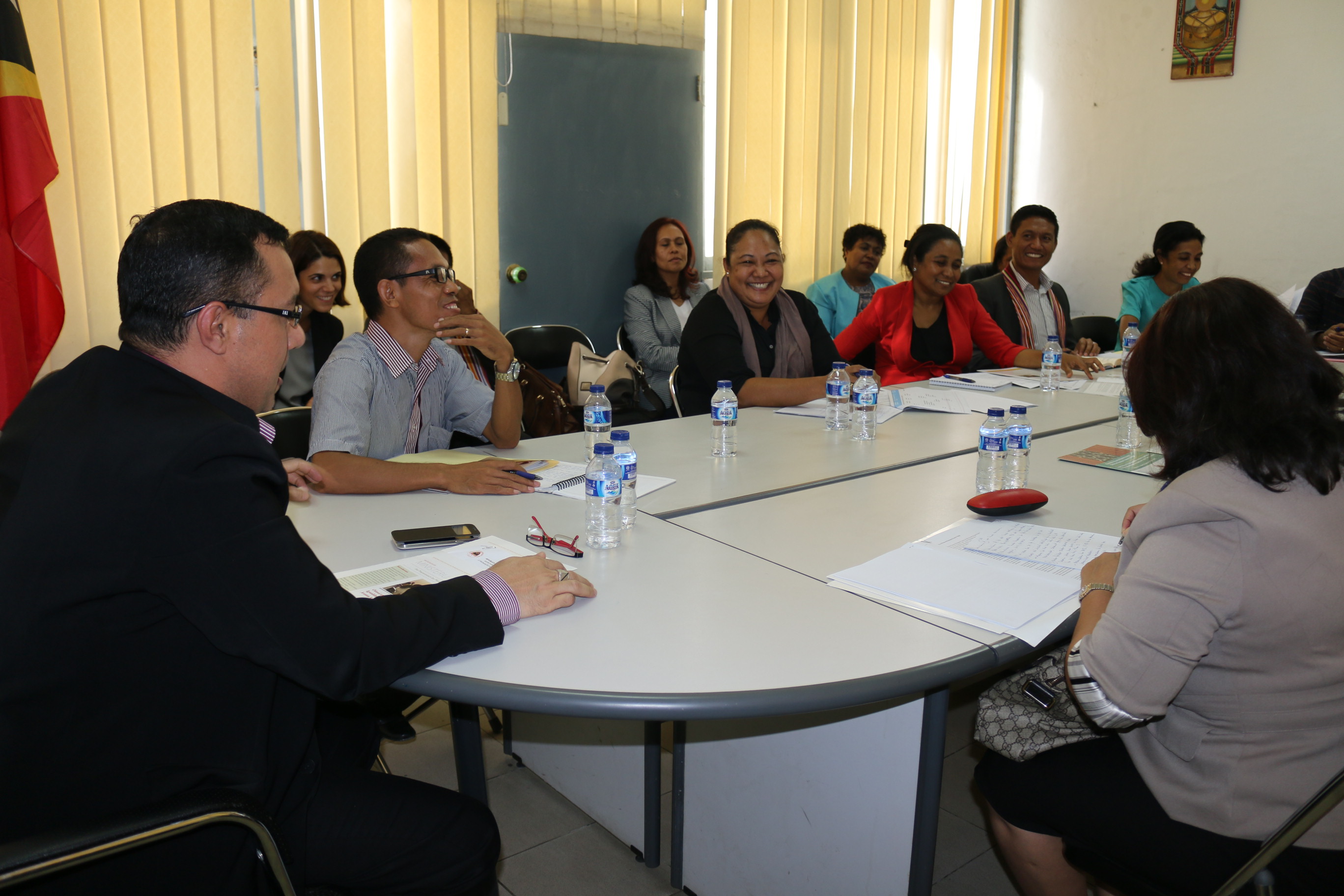 DÍLI, MJ – S.E. Ministru Justisa Ivo Valente halo sorumutu ho Sekretária Estadu ba Apoiu no Promosaun Sosiu-Ekonómiku Feto (SEM) Sra. Veneranda Lemos ho nia ekipa tékniku SEM nian hodi sosializa Matadalan Abordajem Jéneru ba preparasaun Planu Asaun Anuál 2017 iha Sala Reuniaun Ministériu Justisa, Díli, loron Kinta-Feira (16/06/2016).