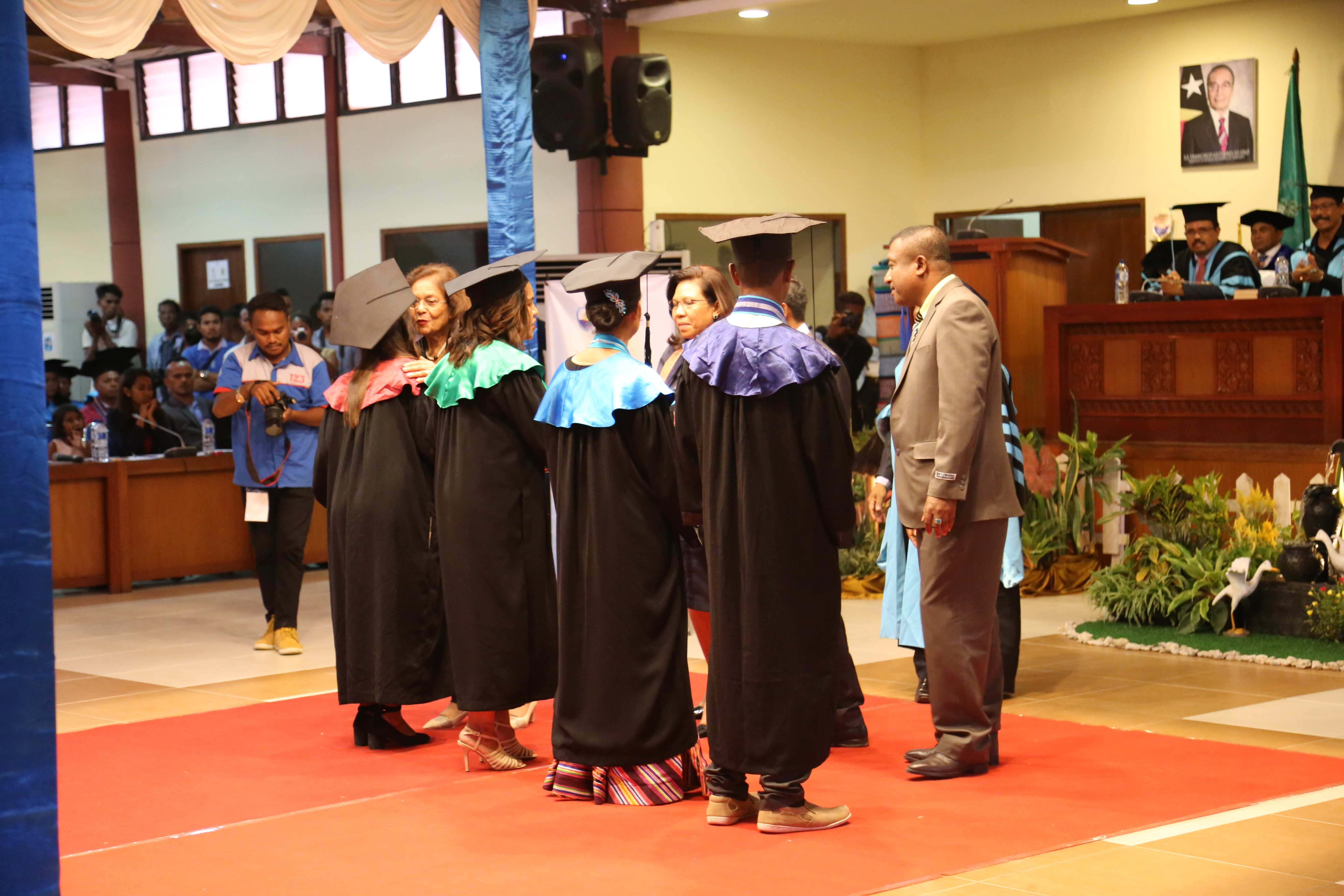 Intervensaun hosi Reitor Universidade Nasionál Timor Loron Sae Dr. Francisco Miguel Martins agradese bót aman no inan ne'ebé fó nian suporta ba oan sira to'o remata nian kursu. Husu ba graduados sira atu implementa "MATENEK" ne'ebé sira hetan iha universidade ne'e, hodi lori benefisiu ba estadu, no povu Timor – Leste.