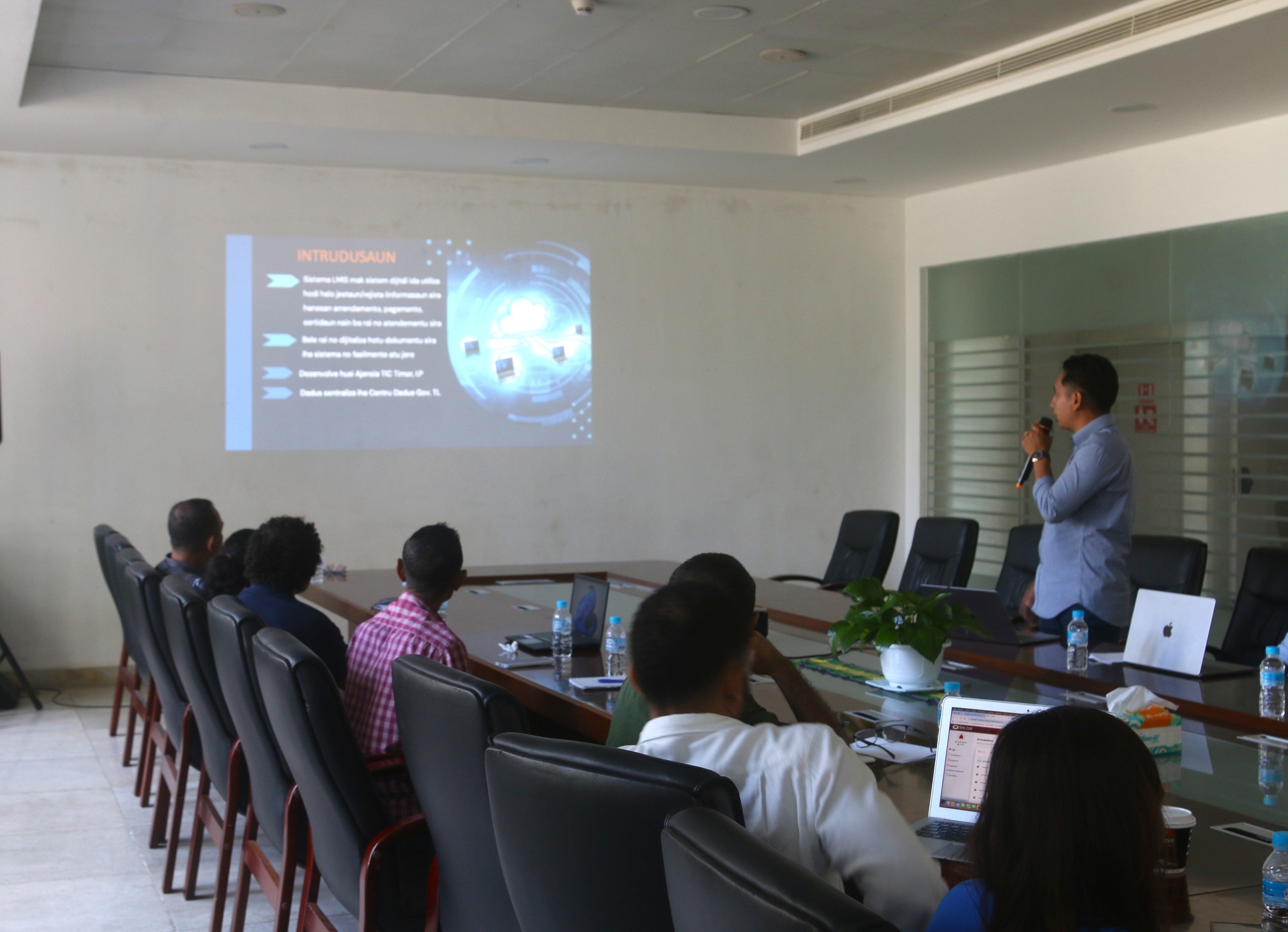 DILI,MJ Kinta-Feira 05 de Fevereiro 2026 Sua-Eselénsia Ministru Justisa, Dr. Sérgio de Jesus Fernandes da Costa Hornai, prezide enkontru servisu entre ekipa Teknolojia Informasaun no Komunikasaun (TIC), Unidade Arendamentu Beins Imoveis (UABIE) no Diresaun Nasional Teknolojia Information (DNTI) Ministériu Justisa, hodi diskute kona-bá “Sistema Informasaun Jestaun Rai” (LMIS sigla Ingles) liuhosi prosesu dizitalizasaun, ne’ebé hala’o iha sala sorumutu Ministériu Justisa, Kolmera, Díli.