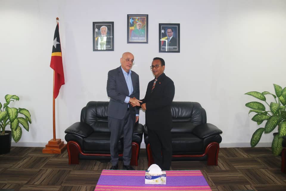 DILI,MJ Tersa-Feira 17 de Marsu 2026 Sua-Eselénsia Ministru Justisa, Dr. Sérgio de Jesus Fernandes da Costa Hornai, hala’o reuniaun bilateral ho Sua Exelénsia Embaixadór Repúblika Federativa Brasil iha Timor-Leste, José Lustosa Leal, iha sala sorumutuk Gabinete Ministru Justisa, Ministériu Justisa, Colmera, Díli.