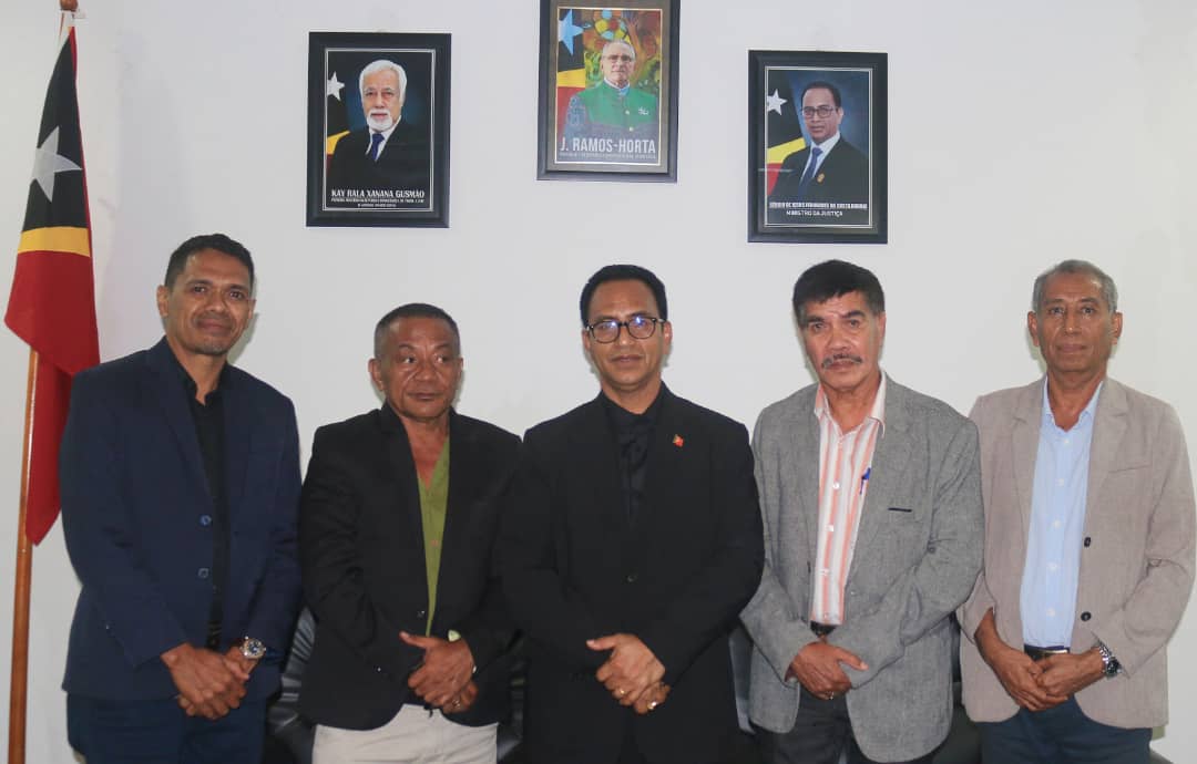 DILI,MJ Tersa-Feira 07 de Marsu 2026 Sua-Eselénsia Ministru Justisa, Dr. Sérgio de Jesus Fernandes da Costa Hornai, simu no realiza audiénsia ho Prezidente Konsellu Diretivu INTL, I.P., Jaime F. M. Carvalho Correia, hamutuk ho ninia ekipa iha sala Gabinete Ministru Justisa, edifísiu Ministériu Justisa, Colmera, Díli.